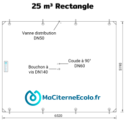 Installationen af en 25 m3 regnvandstank har mange fordele, ud over at spare drikkevand giver den dig mulighed for at opbevare denne dyrebare gratis væske, som er regnvand, der er opsamlet fra dine nedløbsrør, og du behøver ikke længere at lide under vandrestriktioner på grund af tørke. Du sparer på dine vandregninger og gør noget for planeten.