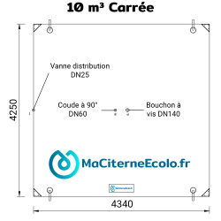 Flexible Zisterne 10m³ quadratisch: Länge 4,34m X Breite 4,25m X Höhe 0,90m