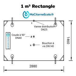 ¿Tiene un pequeño espacio vacío y no sabe qué hacer con él? ¿Le gustaría darle un buen uso y reducir su factura de agua potable? Maciterneecolo.fr, especialista en la venta de soluciones de almacenamiento de agua de lluvia, le propone su pequeña cisterna flexible de 1m3 con una capacidad de 1000 litros. Gracias a sus reducidas dimensiones, su cisterna de 1m3 puede instalarse fácilmente bajo un semisótano estándar, o en un espacio exterior alrededor de su casa. Es la solución ideal para recoger el agua de lluvia. Gracias a su cisterna flexible de 1m3, podrá reducir su consumo de agua potable y ahorrar dinero.