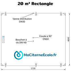 Este innovador equipo, con una capacidad de recuperación de 20.000 litros de agua de lluvia, es la solución ideal para almacenar el agua de lluvia. Gracias al gran volumen de su cisterna flexible de 20 m3, podrá recuperar muchos litros de agua de lluvia y ahorrar en la factura del agua potable. También se beneficiará de una reserva de agua disponible durante todo el año sin preocuparse de las restricciones vigentes para preservar el agua potable, especialmente en tiempos de sequía. Te conviertes en un actor ecológico
