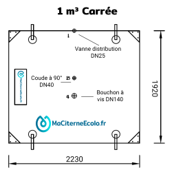 Tanque flexível quadrado de 1m3 : Comprimento 2,23m | Largura 1,92m | Altura 0,5m